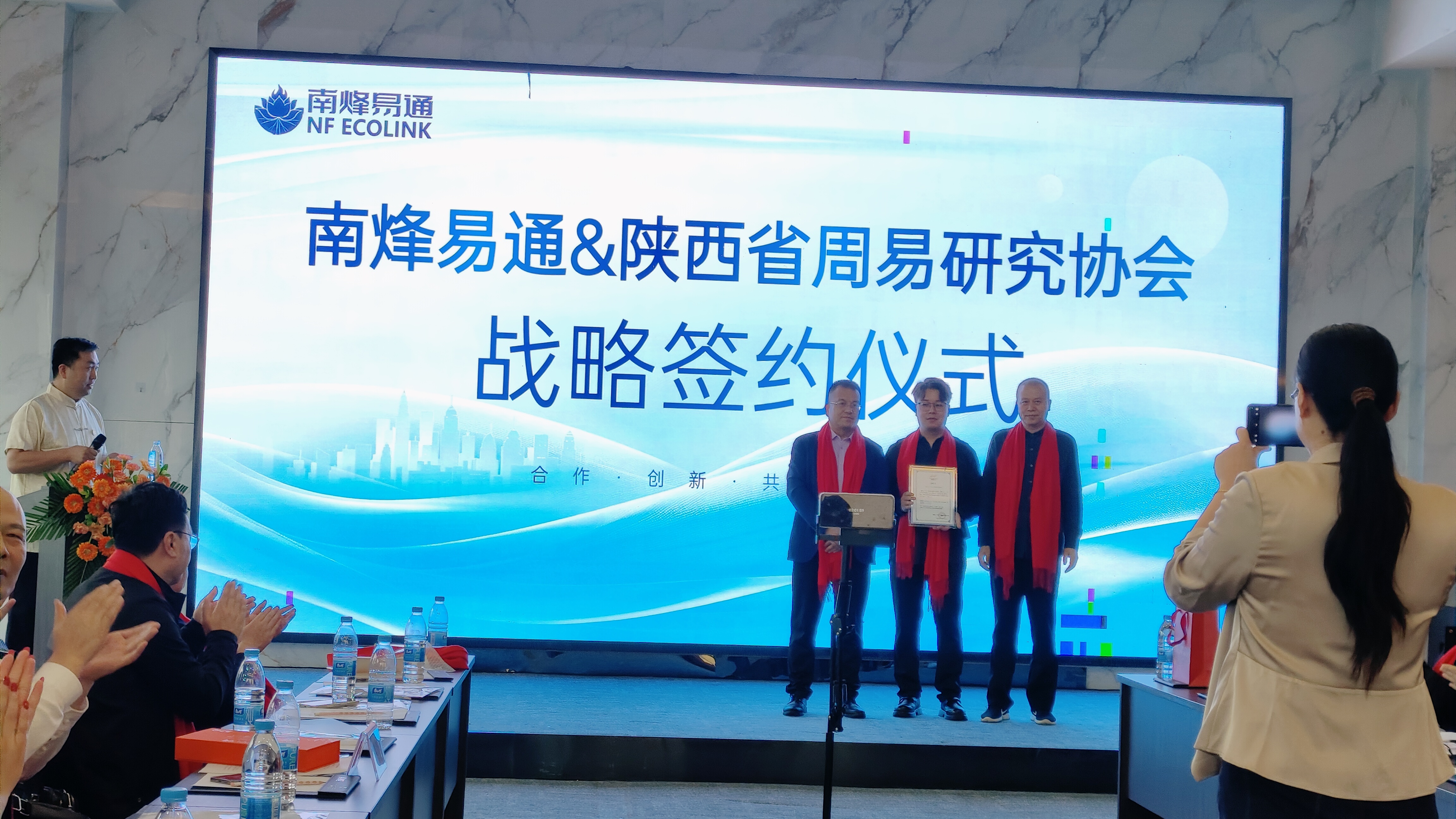 会议最后举行了简洁而隆重的战略合作签约仪式。南烽易通总经理池瀚代表南烽科技,陕西省周易研究会秘书长王钧正、办公室主任赵志林代表研究会共同签署协议。双方将在文化研究、科技应用、健康产业等多个层面展开深度合作。