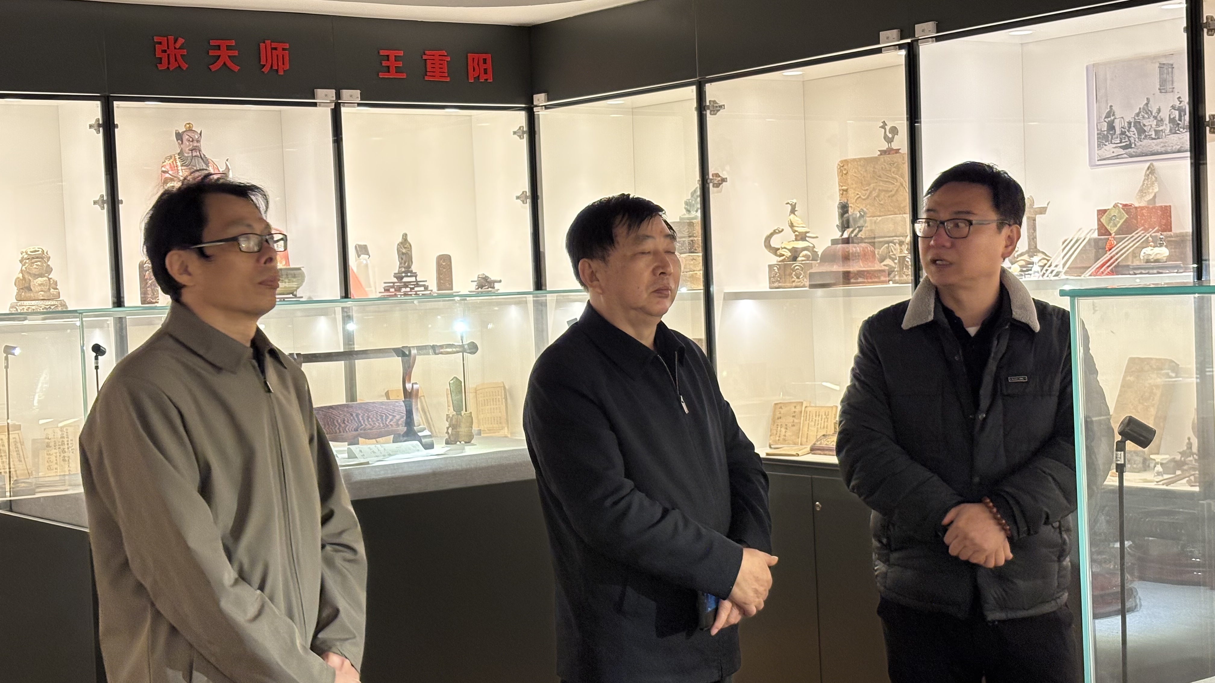在韦韬副会长的引导下,程铖教授细致参观了馆内各展区,包括周易经典文献陈列、易学发展史脉络、象数推演模型及现代应用案例等。