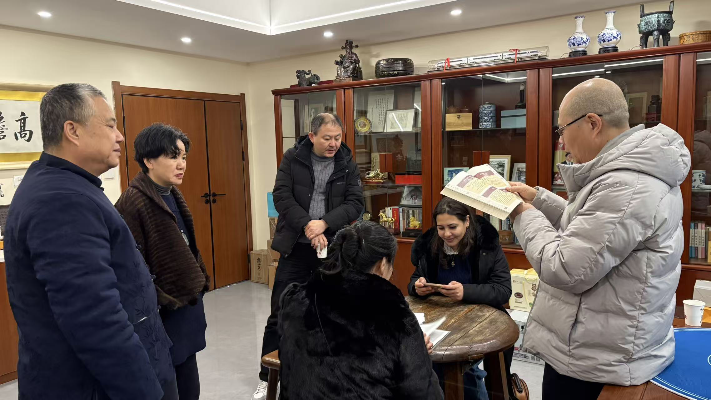 参观交流期间,李耀堂会长全程陪同,细致讲解,引领埃及友人逐一驻足场馆各类核心展区,深入浅出地解读易学文化的起源脉络,传承密码与当代价值,详细介绍馆内各类易学相关馆藏珍品的历史渊源与文化内涵,并赠送了书籍《周易新解》。双方聚焦中埃两大文明的传承脉络与时代发展,围绕古老文明的共性特质与独特魅力深谈互鉴,共探古老文明真谛,在思想的碰撞中感受文明的包容共生,在亲切的交谈中凝聚跨地域的友谊之情。